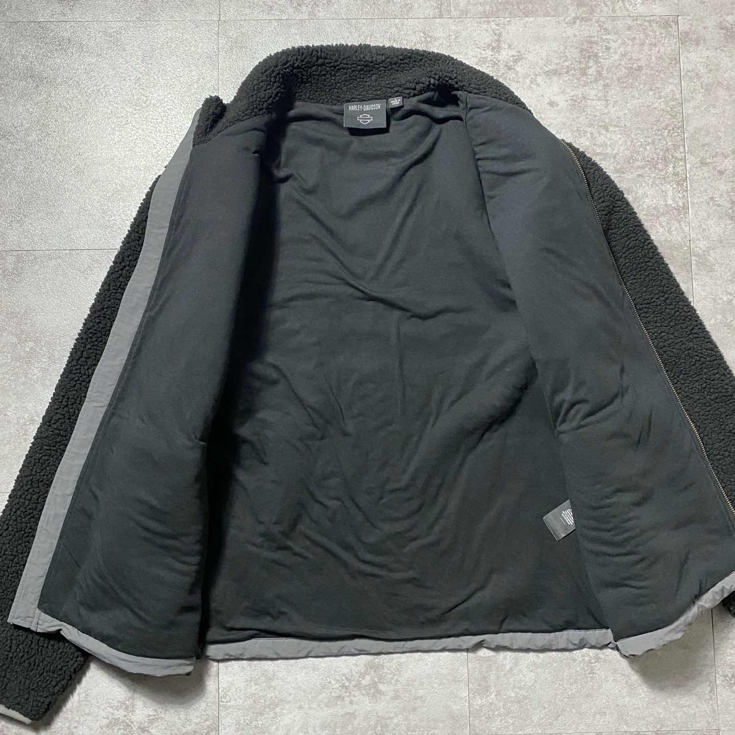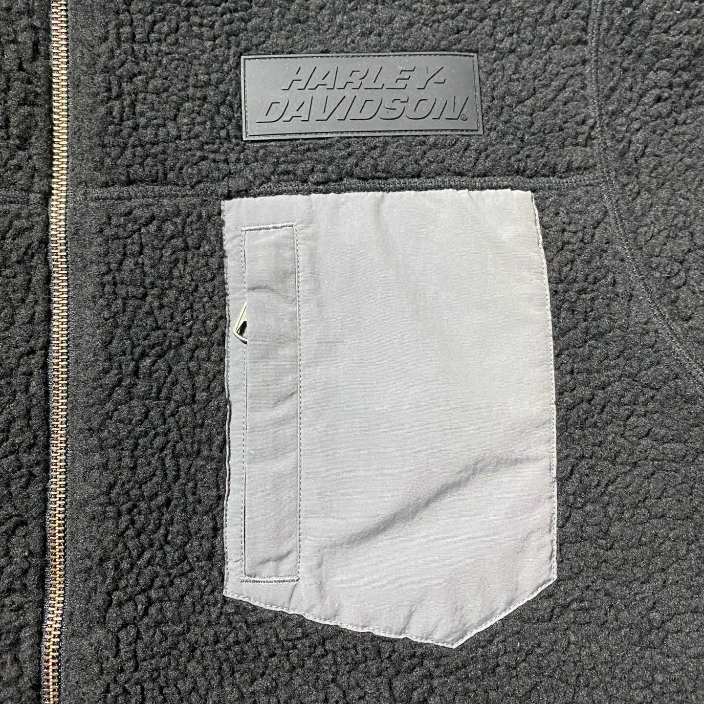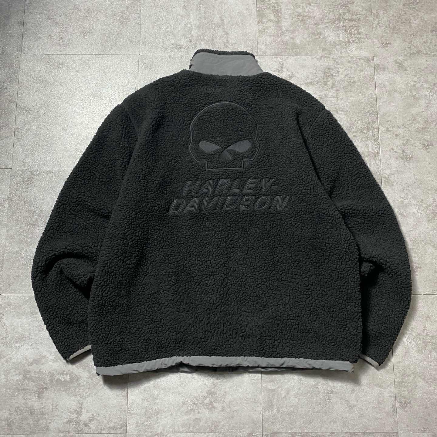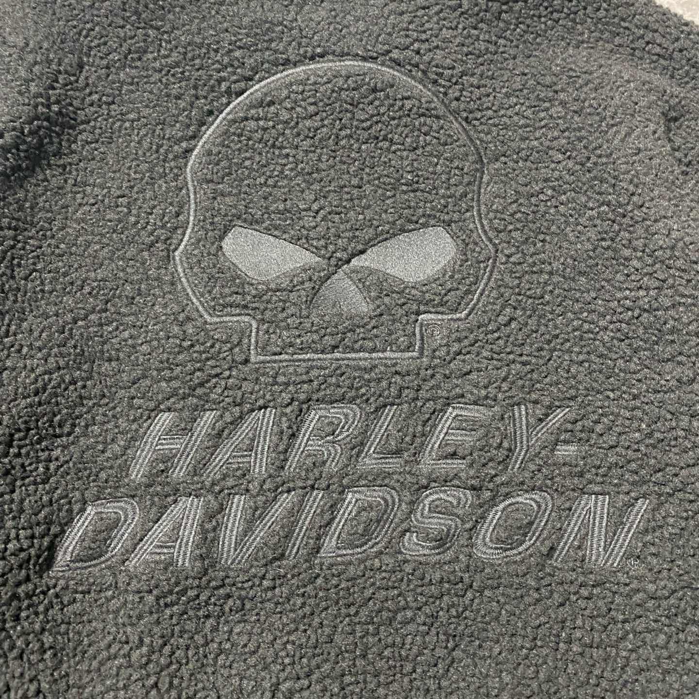 ハーレーダビッドソン スカル 刺繍バックロゴ ブラック ボアフリースジャケット