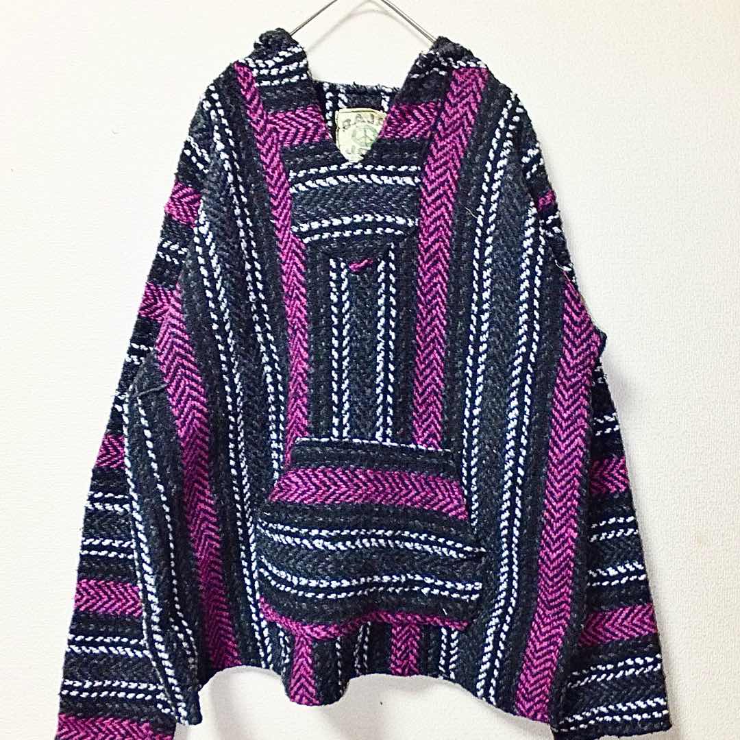 メキシコ製風 バハパーカー 紺系 M〜L相当 古着