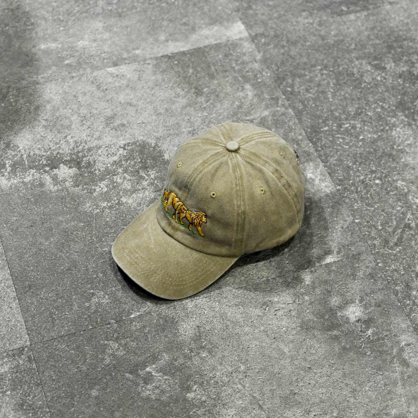 古着 フェード ライオン 6パネル キャップ 帽子 ベージュ