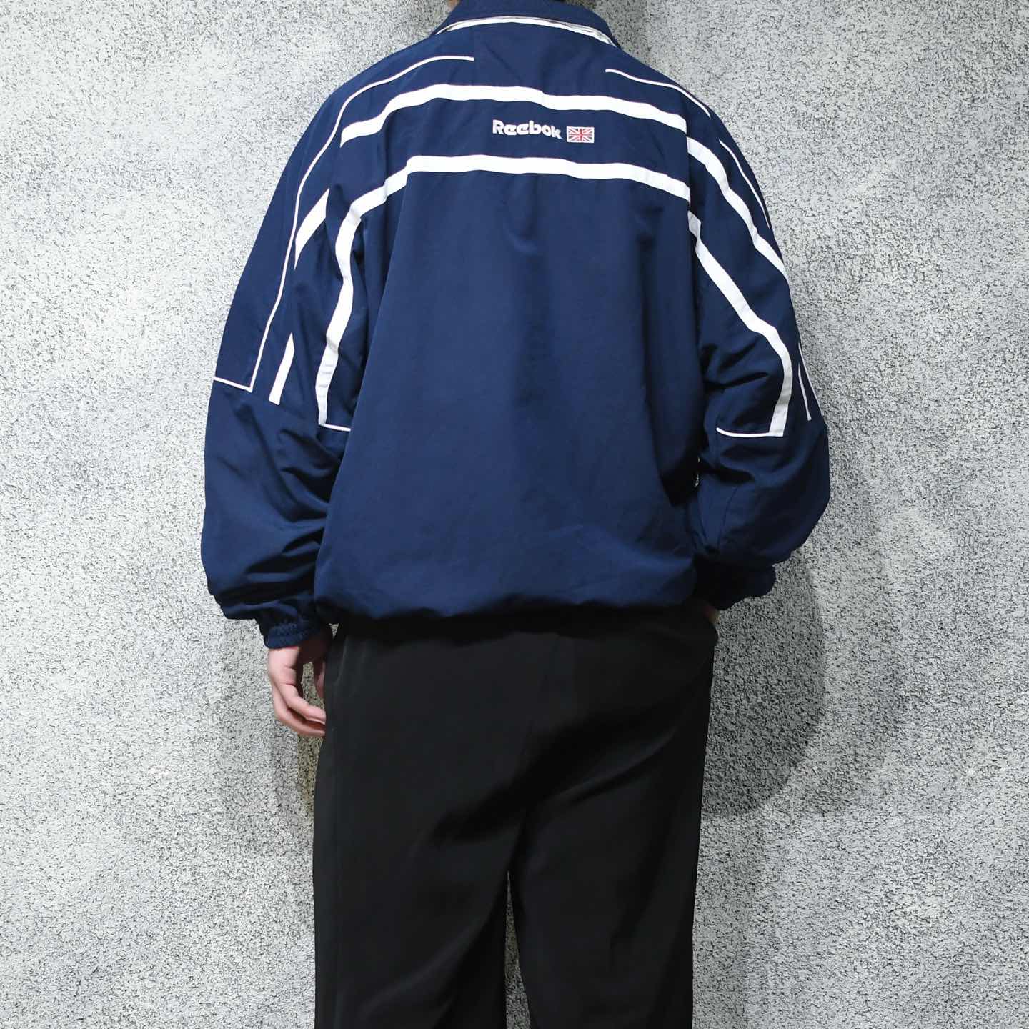古着 Reebok ナイロンジャケット ジャケット ブルゾン デザイン ネイビー
