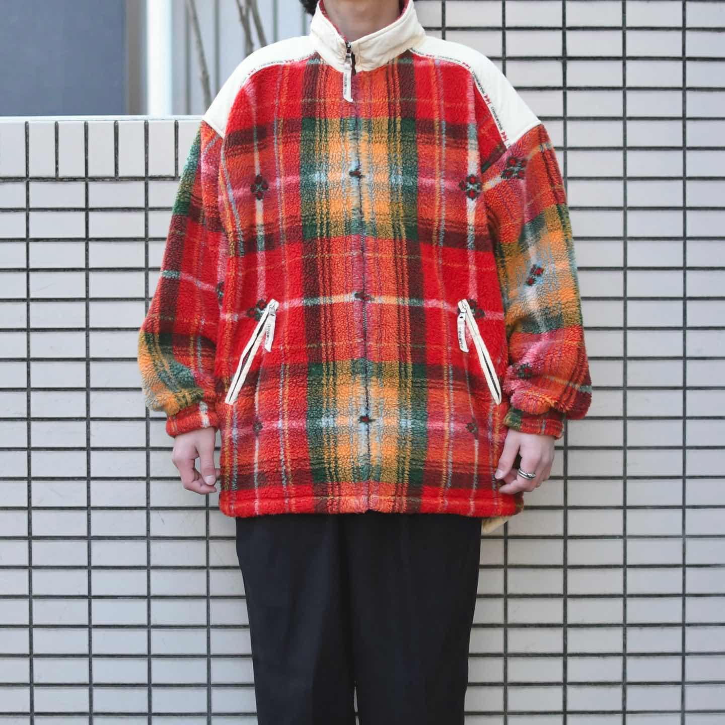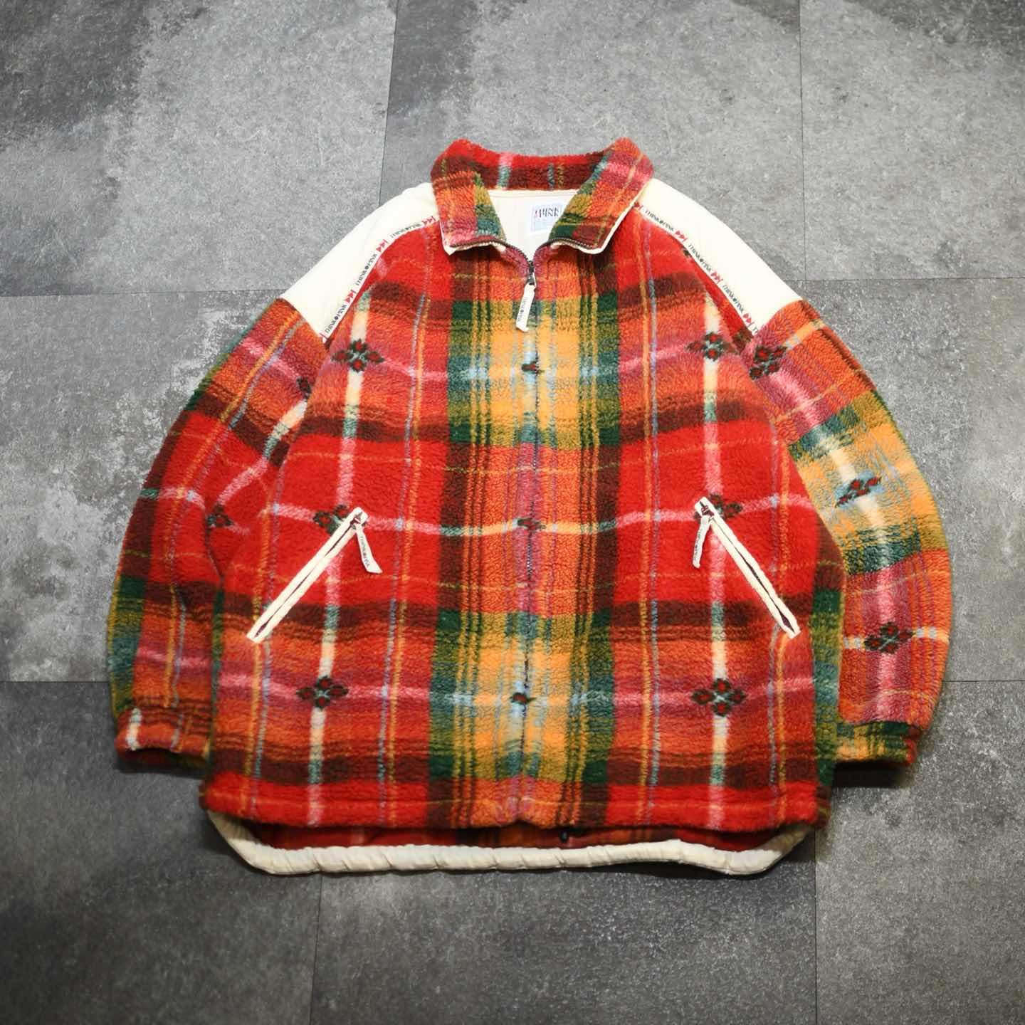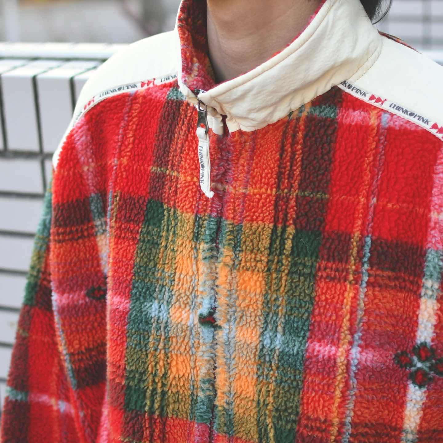 古着 THINK PINK 総柄 柄 フリースジャケット フリース イタリア製