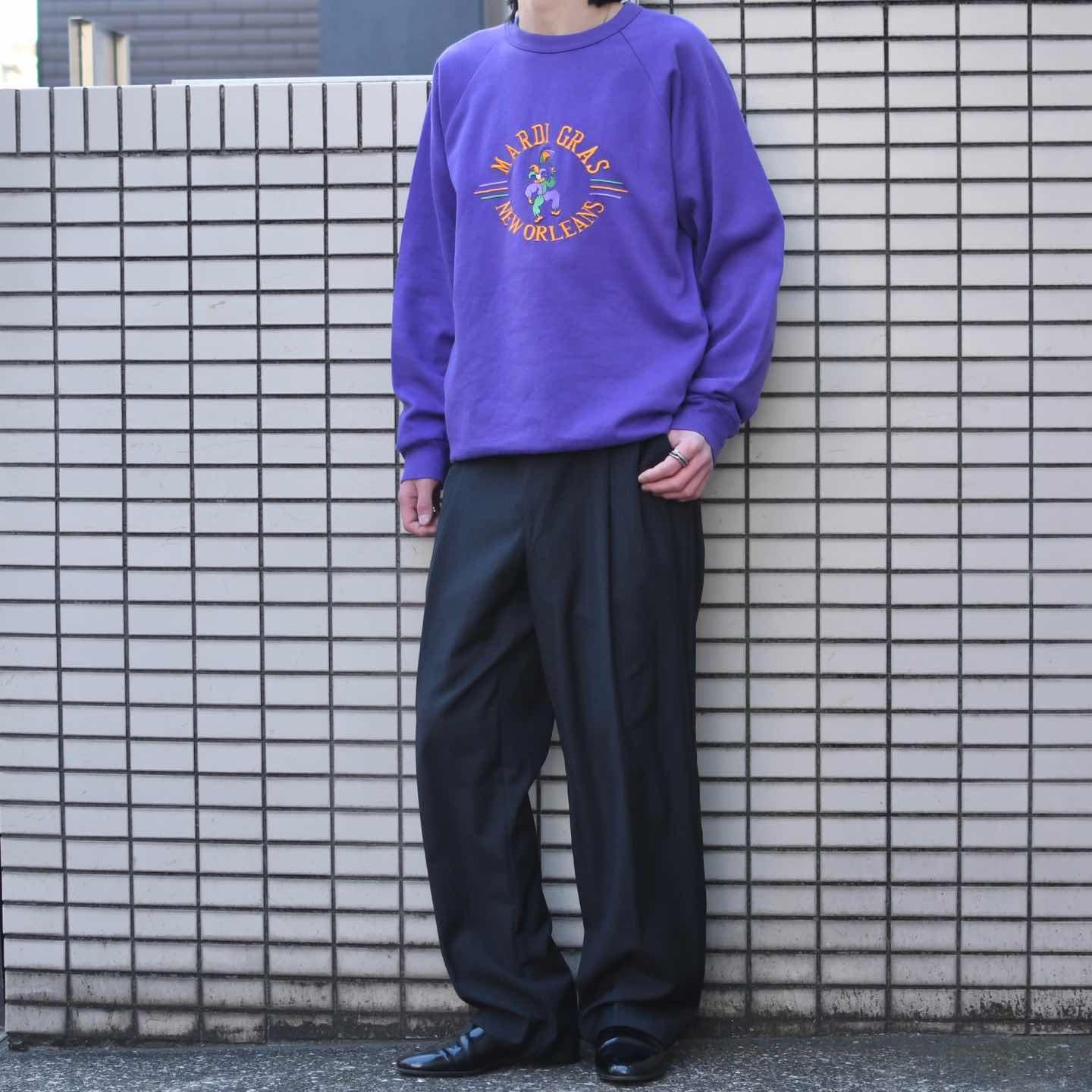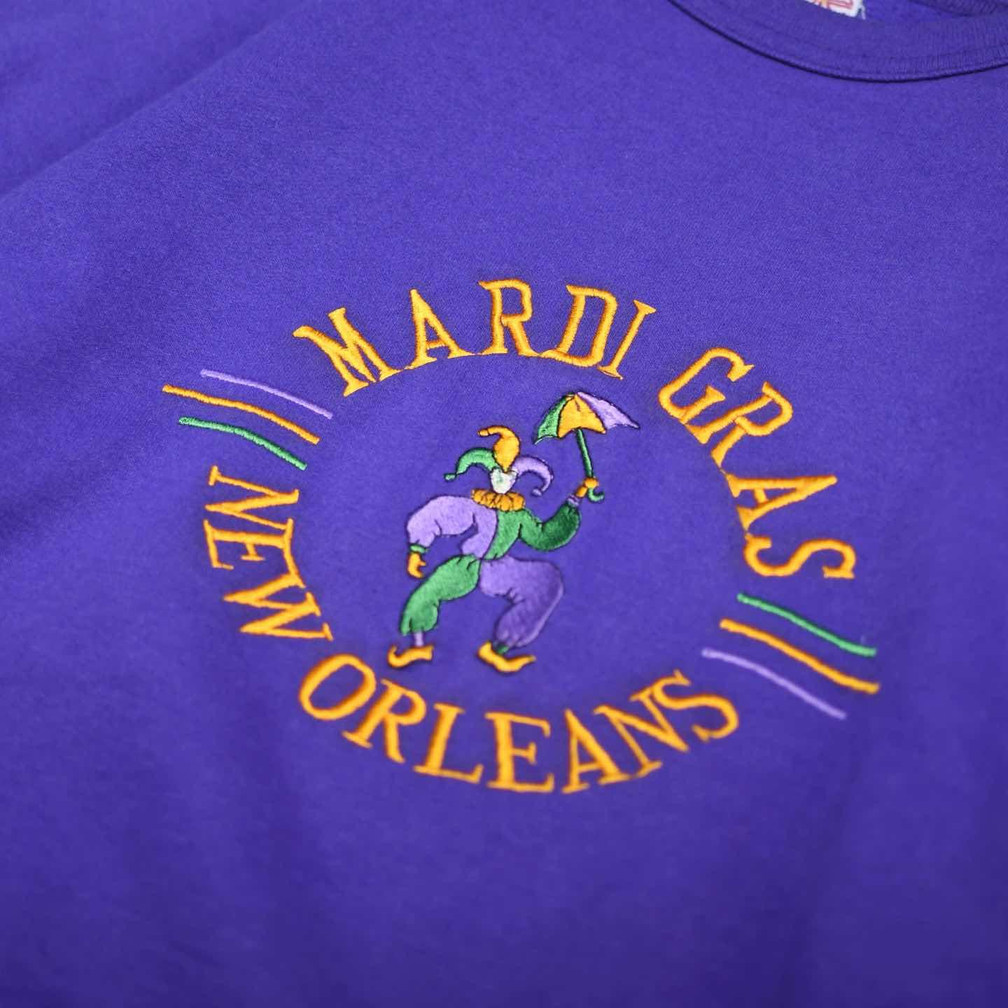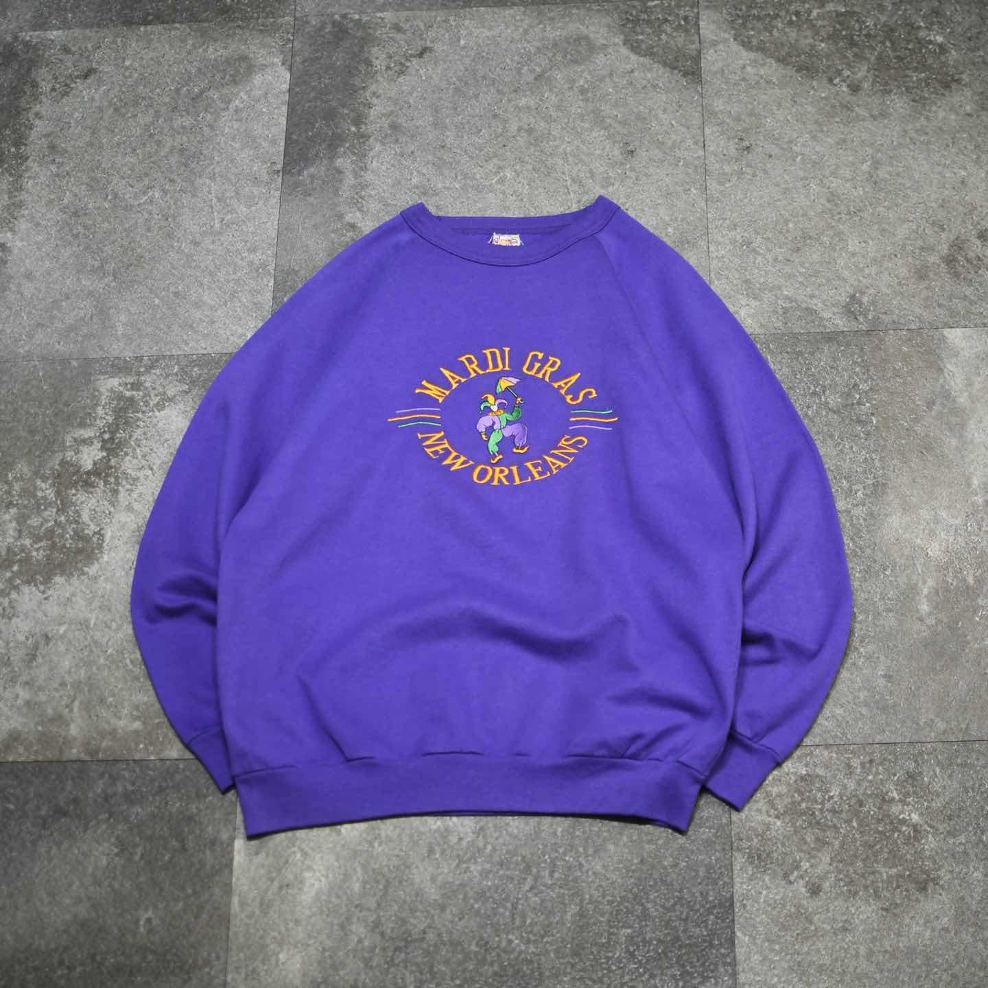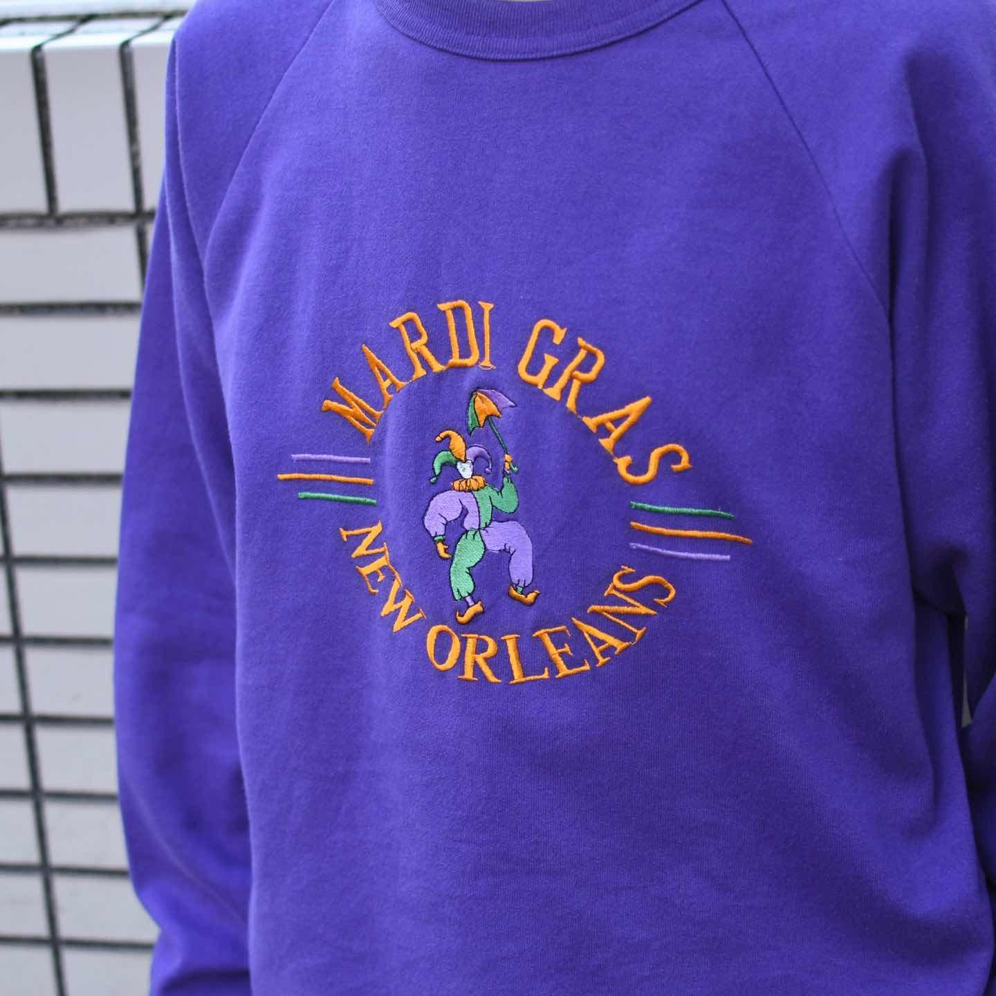 古着 マルディグラ 記念 スウェット USA製 刺繍 トレーナー パープル 紫